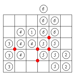 Učiteľ žiakom rozdá hracie plány tvorené štvorcovou sieťou rozmerov 6x5 (tieto rozmery možno podľa potrebnej dĺžky trvania jednej hry zmeniť). Žiak, ktorý je prvý na ťahu, nakreslí do ľubovolného štvorca hracej siete kruh, do ktorého napíše číslo 1. (Hadík sa narodil a má jeden deň.) Druhý hráč si vyberie ľubovoľný mrežový bod, t.j. bod kde sa pretínajú čiary štvorcovej siete a stredovou súmernosťou so stredom v tomto bode zobrazí pôvodný kruh do jeho novej polohy. Do ľubovolného voľného štvorca susediaceho vodorovne resp. zvislo s novou polohou pôvodného kruhu prikreslí ďalší kruh. Do oboch týchto kruhov napíše číslo 2. (Hadík sa premiestnil a podrástol, už má dva dni.) Pokračuje sa analogicky, každý ďalší ťah spočíva v premiestnení hada a jeho zväčšení o jeden štvorec siete. Hráči sa striedajú v ťahu. Ak v rámci ťahu ľubovolná časť hada má byť zobrazená mimo štvorcovej siete, resp. do priestoru, kde had už bol, hráč prehráva. Takisto prehráva, ak nemá voľný priestor na zväčšenie hada. V rámci nasledujúcej partie hry žiaci zmenia poradie, v ktorom hru začínali. Ilustračný priebeh hry je na obrázku.
